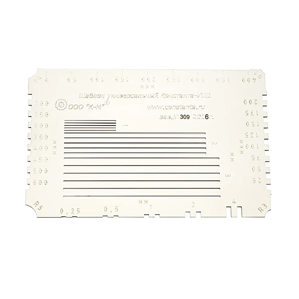 Адгезиметры выполнены в виде шаблона с нормированными прорезями, изготовленного из плоской пластины нержавеющей стали.