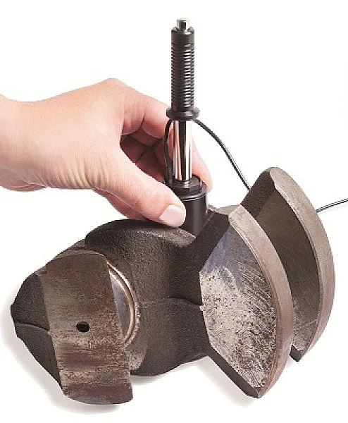Твердомер работает по методу Либа, при котором отношение скорости отскока к скорости падения индентора с твердосплавным наконечником зависит от твердости испытуемого материала.