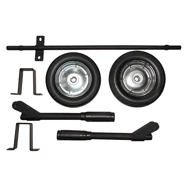 В состав комплекта, помимо колес с осью, включены опоры, удерживающие электростанцию в горизонтальном положении в процессе работы и хранения, а также складывающиеся ручки и необходимые крепежные элементы.