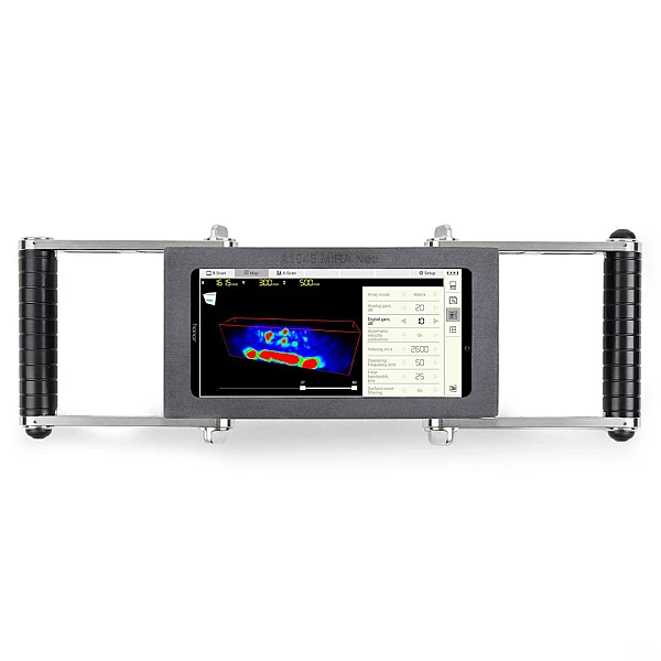 Инновационный, компактный низкочастотный ультразвуковой томограф А1040 MIRA 3D предназначен для контроля конструкций из бетона, железобетона и камня при одностороннем доступе к ним с целью определения целостности материала в конструкции, поиска инородных включений, полостей, непроливов, расслоений и трещин, а также измерения толщины объекта контроля. Основной особенностью томографа является ультразвуковой контроль объектов с толщиной до 1 метра возможностью быстрого построения 3D изображения внутренней структуры бетона.